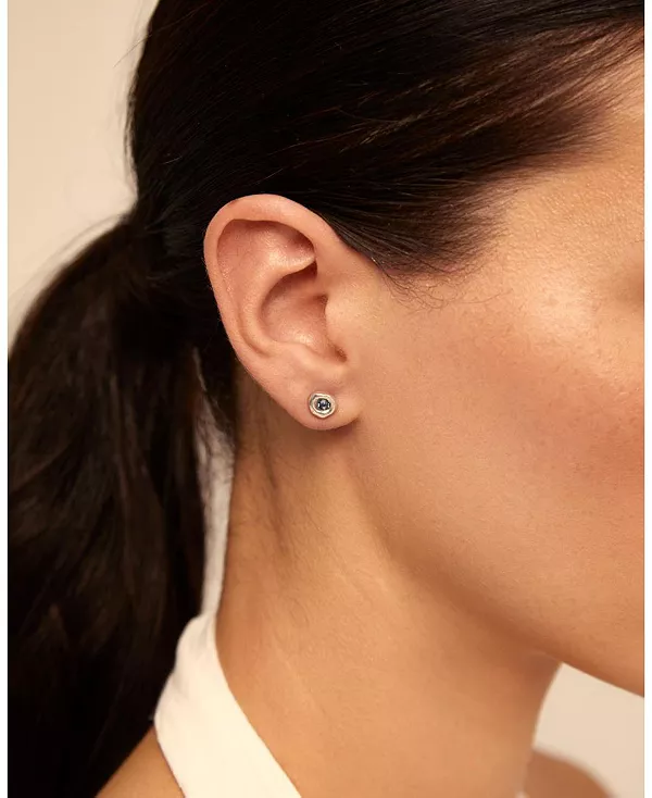 Серьги с покрытием из стерлингового серебра с необычным дизайном, увенчанные в центре ярким синим кристаллом, который можно носить в самых торжественных случаях.