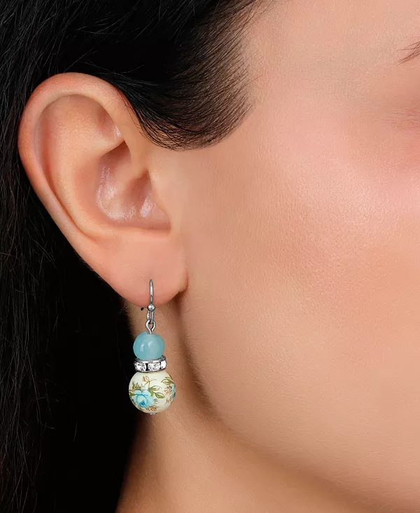 Эти изящные серьги-подвески украшены круглыми синими розами и виноградной лозой, украшенными мерцающими кристаллами. Дизайн дополняют сияющие стеклянные бусины цвета морской волны, которые придают мягкость и элегантность. Идеальный аксессуар, который добавит романтическую нотку, вдохновленную природой, любому образу.