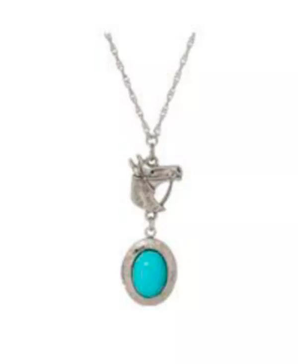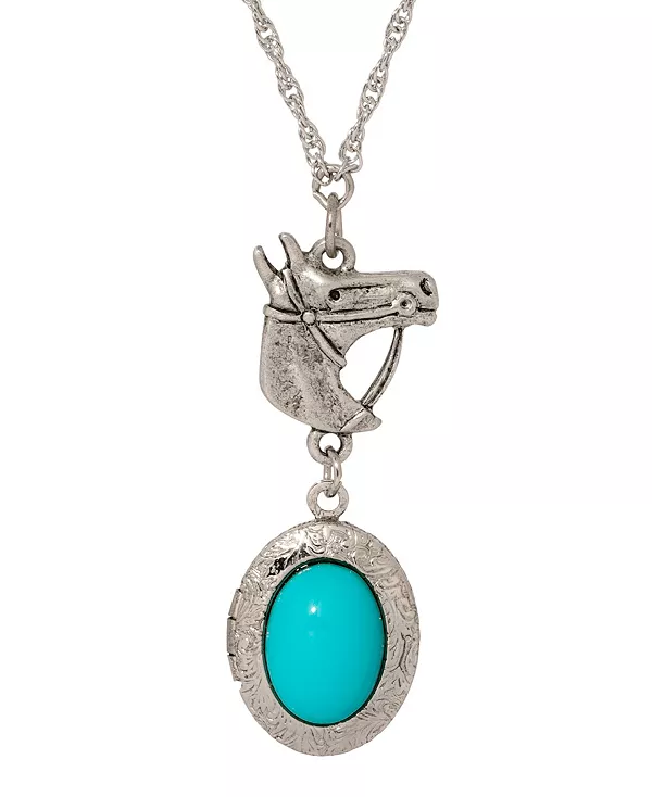 Держите своих близких рядом с этим прекрасным медальоном-ожерельем с головой лошади и овальным камнем искусственной бирюзы.