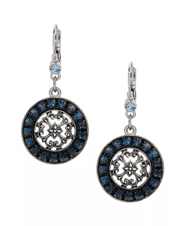 Круглые филигранные серьги-подвески с синими кристаллами 2028, blue 7 768₽