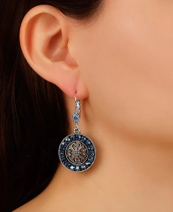 Круглые филигранные серьги-подвески с синими кристаллами 2028, blue