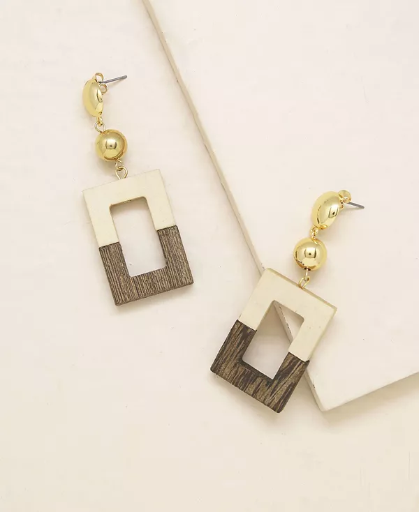 Древесина двух разных оттенков придает этим серьгам естественный, шикарный вид. Легкие, подходят для ношения в течение всего дня.