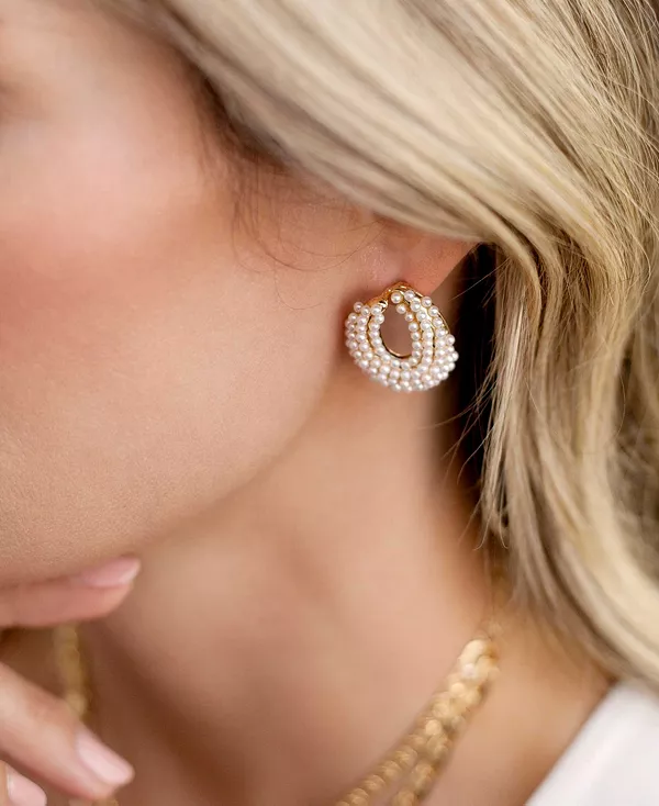 Серьги-Гвоздики с имитацией жемчуга Ettika, gold