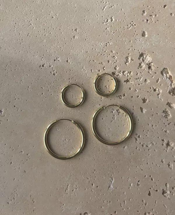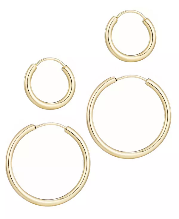 Набор из двух серег-колец ADORNIA, покрытых 14-каратным золотом, состоит из двух пар гладких, непрерывных колец, покрытых сияющим 14-каратным золотом. Эти бесконечные кольца воплощают в себе непреходящую элегантность и минималистичный дизайн, который легко дополнит любой наряд.