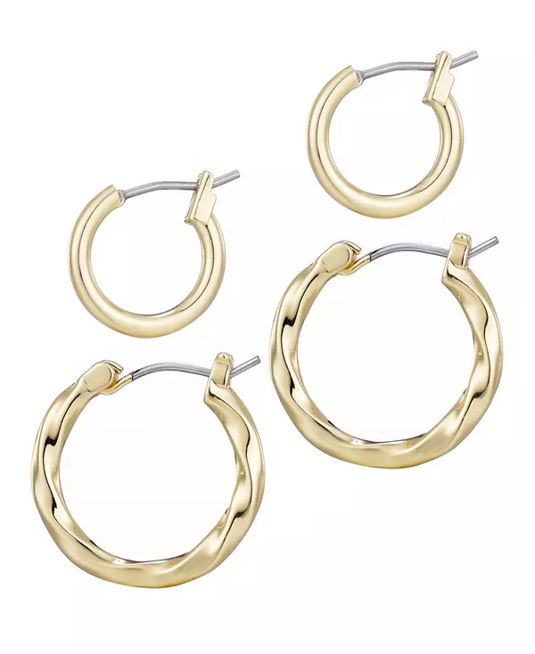 Комплект из двух серег-колец ADORNIA, позолоченных 14-каратным золотом, сочетает в себе классический стиль и современный шик. Этот дуэт состоит из двух пар сияющих серег-колец, покрытых 14-каратным золотом: одни — элегантные и простые, другие — с изящной текстурой — идеально подходят для комбинирования, сочетания и создания многослойных образов.