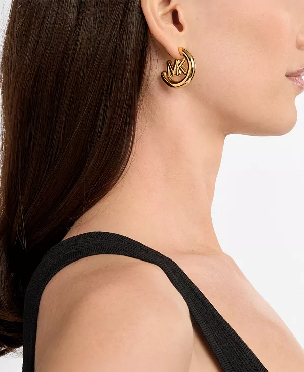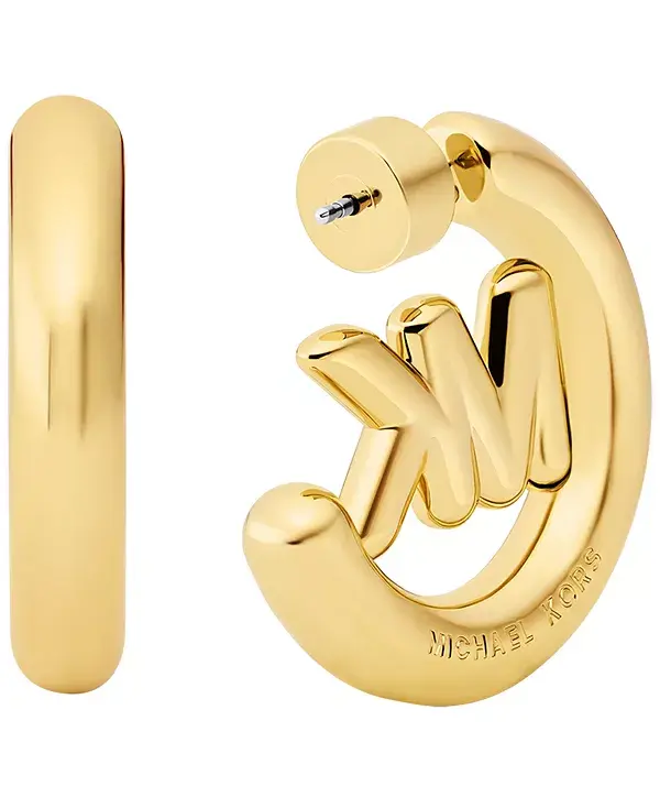 Коллекция украшений Kors MK посвящена жизни и творчеству Майкла, а фирменный логотип MK стал ключевым элементом дизайна. Эти серьги-кольца, отделанные полированным золотом, украшены культовым логотипом MK, создавая эффектный образ, который непременно привлечёт внимание.