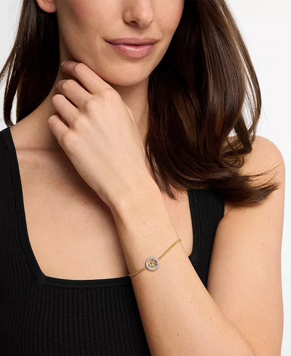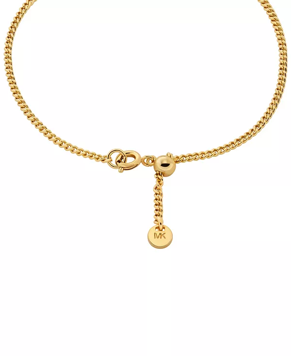 Коллекция украшений Kors MK посвящена жизни и творчеству Майкла, а фирменный логотип MK стал ключевым элементом дизайна. Этот браслет украшен полированным золотистым логотипом со сверкающим паве, украшающим цепочку из микрозвеньев. Застёжка-пружина и регулируемый слайдер обеспечивают надёжность и возможность персонализации.
