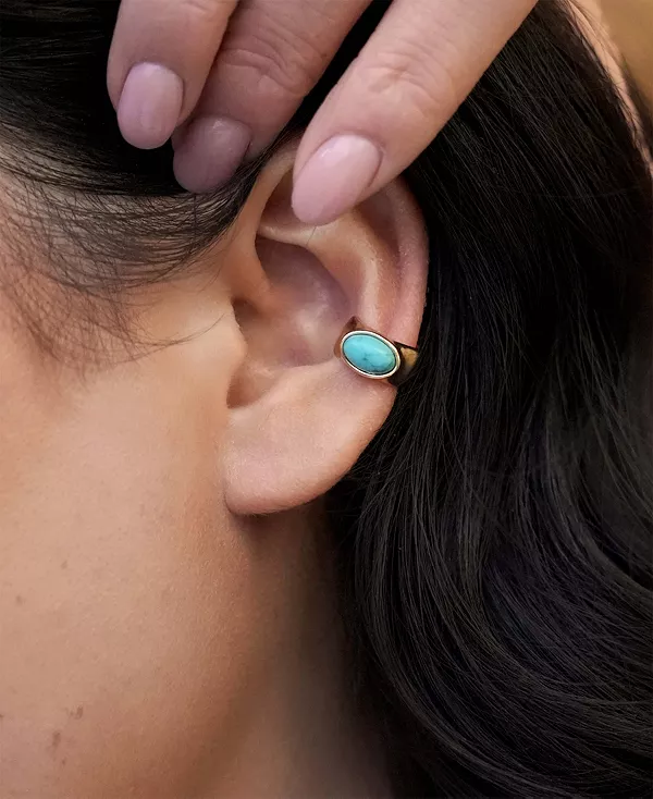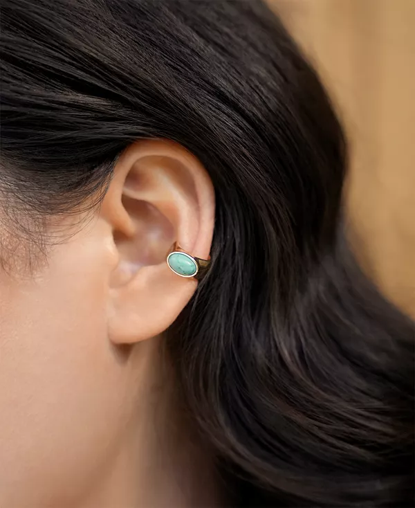 Серьга-кафф Turquoise Solstice облегает ухо благодаря гладкому металлу с оттенком бирюзы, предлагая свежий взгляд на стиль в стиле вестерн.