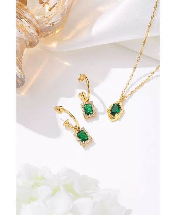 Этот изумрудный кулон, сияющий неизменным блеском высококачественного зелёного циркония, подвешен на изящной золотой цепочке. Металлические детали ручной работы придают ожерелью непринуждённое очарование. Если вы предпочитаете многослойность или более простой стиль, это украшение идеально вам подойдёт.