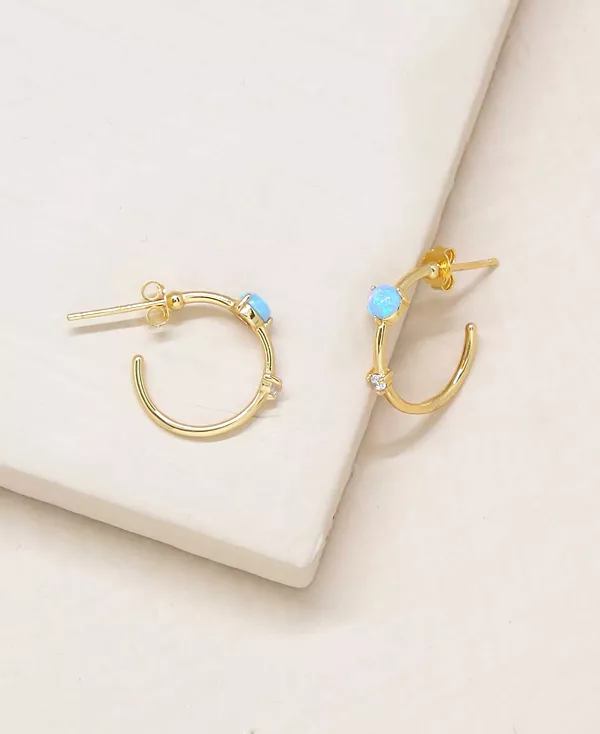Маленькие и изящные серьги-кольца Huggie Hoops с акцентами из светло-голубого опала Kyocera и кубического циркония идеально подходят для повседневной носки.