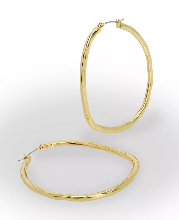 Изысканные крупные скульптурные серьги-кольца, украшенные слегка кованой текстурой, идеально подойдут на каждый день.