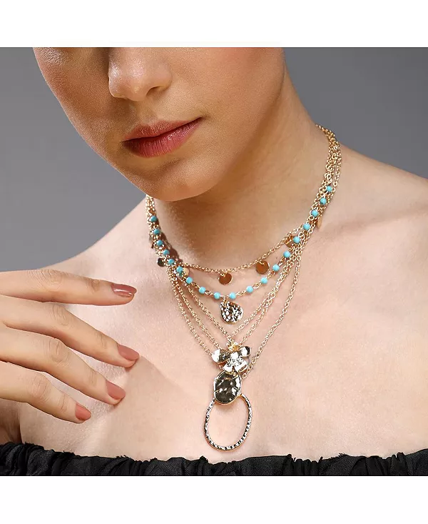 Подчеркните свой стиль с этим роскошным многорядным ожерельем, призванным стать смелым и элегантным акцентом.