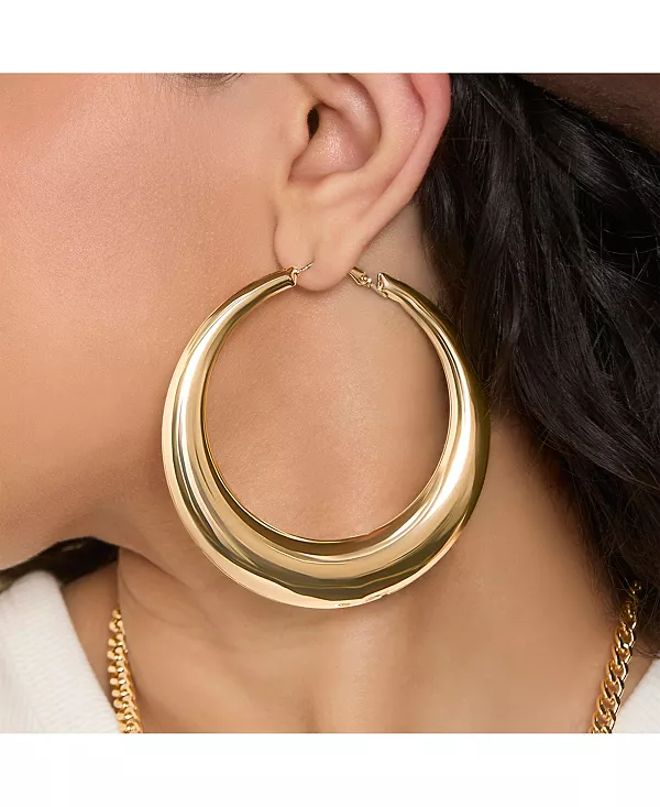 Создайте яркий образ с этими широкими серьгами-кольцами в форме полумесяца с блестящим золотым покрытием.