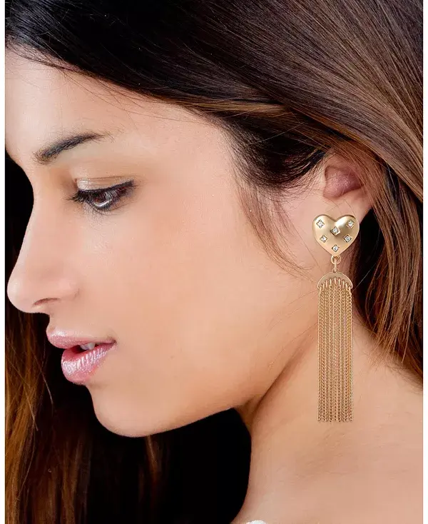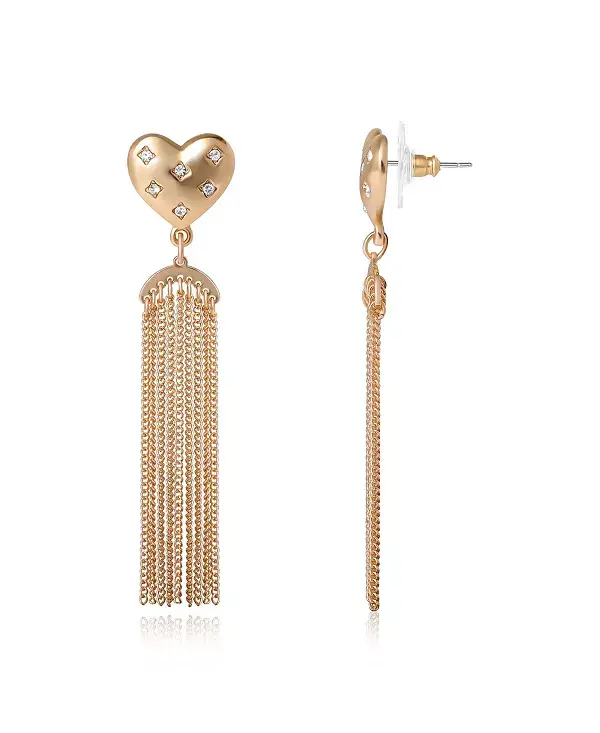 Добавьте выразительного очарования вашим ушам с этими серьгами-кисточками в форме сердца от BCBG Generation. Благодаря мерцающим камням и струящимся цепочкам-кисточкам, они станут идеальным дополнением для вечерних выходов.