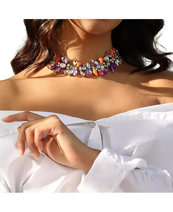 Это эффектное ожерелье идеально подходит для праздничных случаев и общественных мероприятий, добавляя гламура вашим праздничным нарядам.