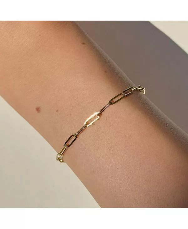Этот браслет, изготовленный из удлиненных звеньев в форме скрепки, добавит современный вид любому браслету на запястье, сохраняя при этом его вневременную изысканность.