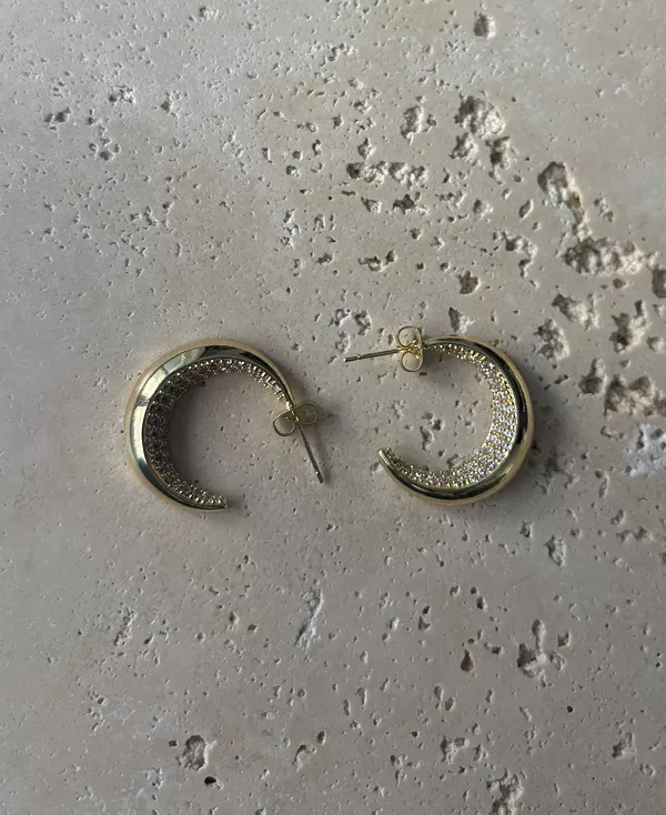 Позолоченные серьги-кольца с кристаллами Adornia, gold