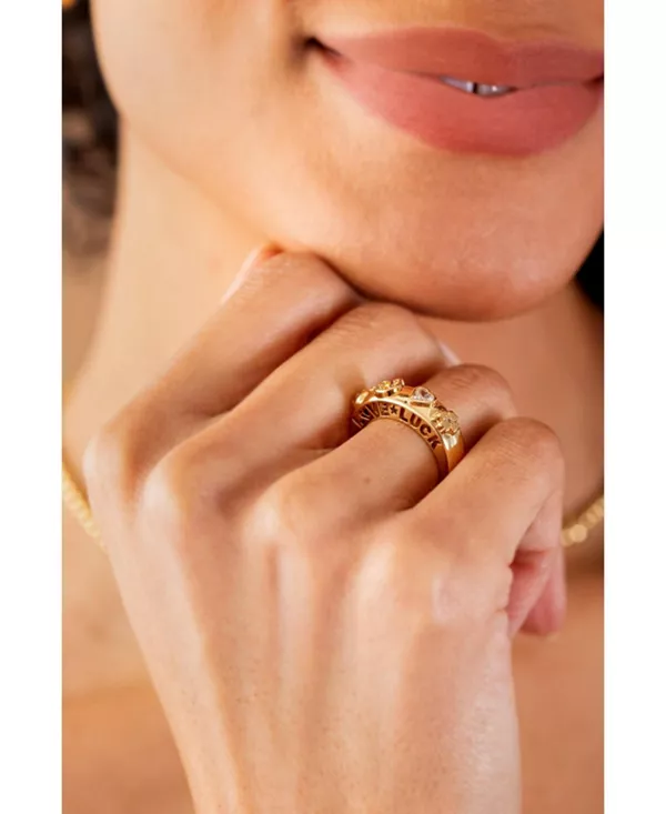 Когда у вас есть любовь и удача, у вас есть всё необходимое. Это разомкнутое куполообразное кольцо «Любовь и удача» украшено четырьмя символами удачи, украшенными кристаллами: подковой, четырёхлистным клевером, божьей коровкой и сверкающим сердцем. Под ним написано «Любовь и удача». Носите его, чтобы получить частичку удачи, или сочетайте с другими символами, которые расскажут вашу историю.