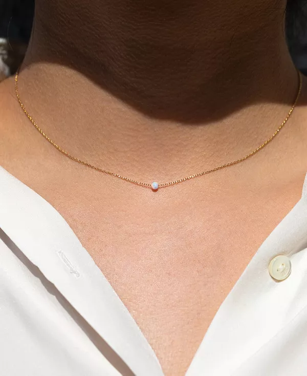 Классическое ожерелье никогда не выходит из моды. Наше ожерелье Tiny Opal украшено подвеской из опала, переливающейся всеми цветами радуги.