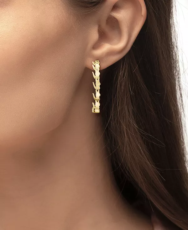Lacoste отдает дань уважения своему культовому бренду, добавив к этим средним C-образным серьгам привлекательных миниатюрных крокодилов.