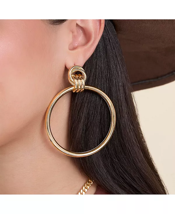 Выразите свою индивидуальность с помощью этих крупных круглых серег-подвесок сияющего золотого оттенка.