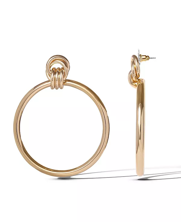 Крупные золотые серьги-подвески в форме круга Jessica Simpson, gold