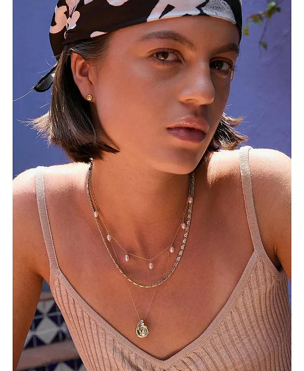 Эти золотые серьги-гвоздики, покрытые 14-каратным золотом, незаменимы для лета и отличаются смелым дизайном, вдохновленным ракушками, который идеально подходит для того, чтобы добавить что-то привлекательное в ваш образ.