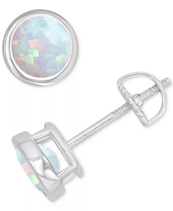Серьги-Гвоздики с оправой из выращенного в лаборатории опала (1/3 карата) Macy'S, silver