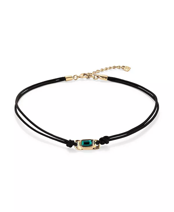 Кожаное ожерелье с зеленым кристаллом Unode50, gold