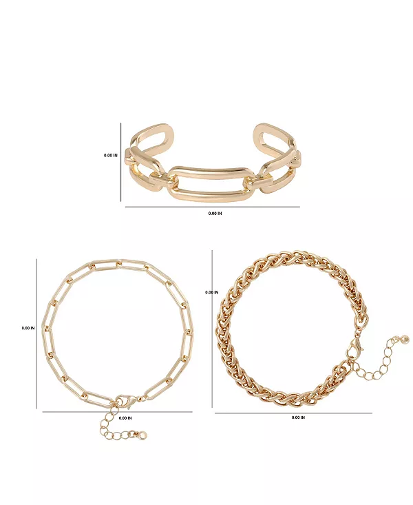Украсьте свое запястье этим трио золотистых браслетов-цепочек от BCBG — идеально сочетаются как вместе, так и по отдельности.