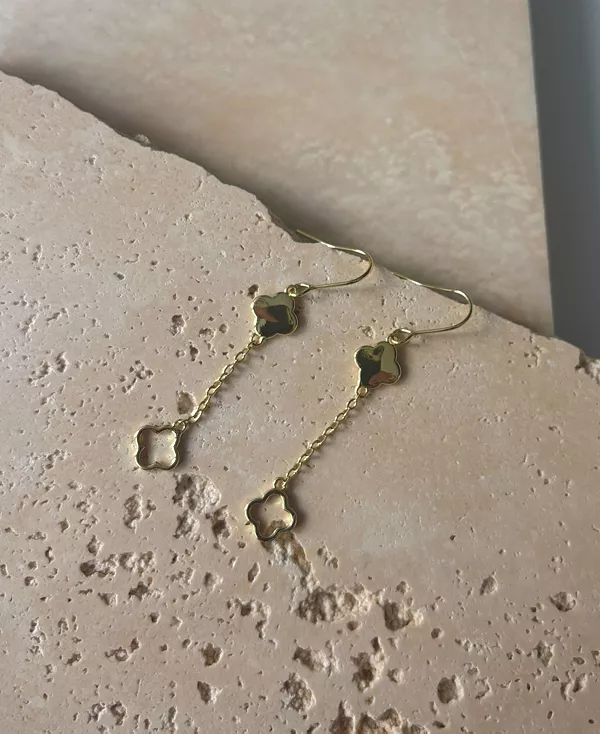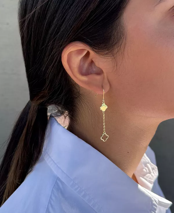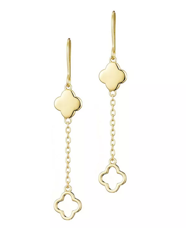 Серьги-подвески ADORNIA с клевером, покрытым 14-каратным золотом, дарят грациозное движение и приносят удачу. Изящные подвески в виде клевера, подвешенные на изящных крючках с покрытием 14-каратным золотом, добавят изысканную элегантность и игривый блеск любому образу.