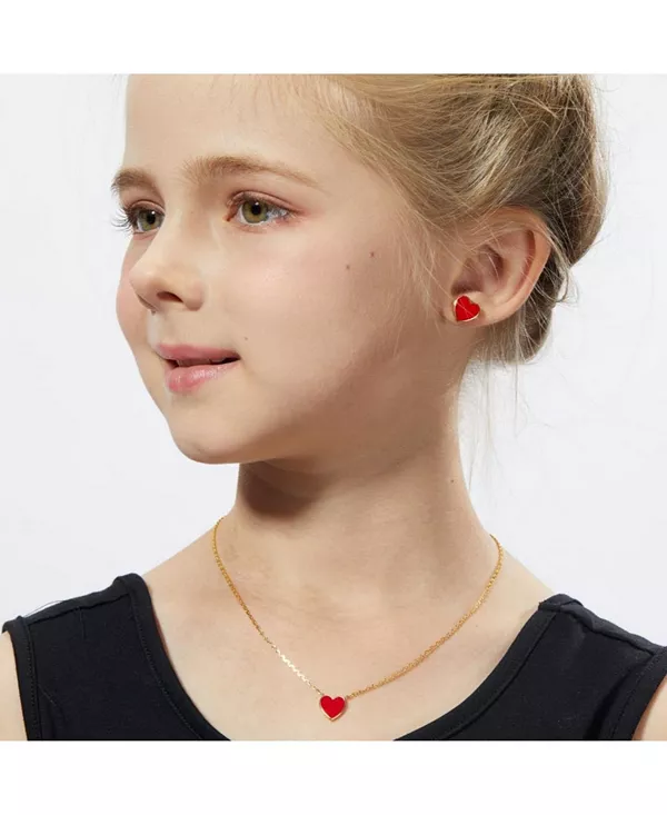 Это изящное золотое ожерелье украшено очаровательным кулоном в форме сердца с классической вишнево-красной сердцевиной. Стильное и элегантное, это прекрасное украшение для маленьких детей, которое будет радовать их. Изделие поставляется в нашей фирменной розовой подарочной коробке.
