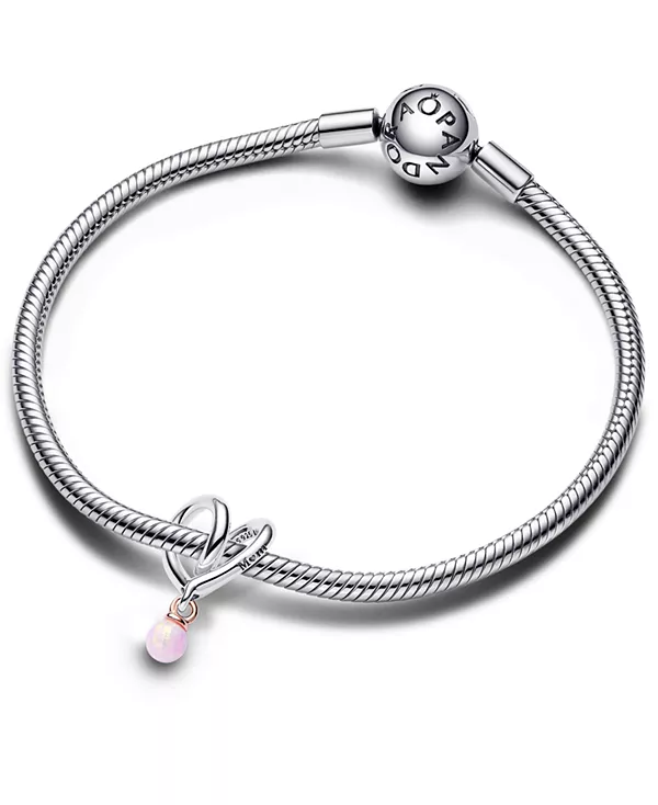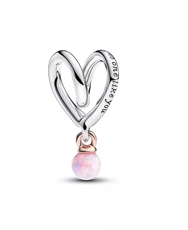 Двухцветный шарм «Обёрнутое сердце», изготовленный из стерлингового серебра и покрытый 14-каратным розовым золотом, станет уникальным украшением для вашей мамы. Этот шарм, тщательно продуманный, чтобы обернуть его вокруг любого держателя, украшен очаровательным мотивом в виде сердца, образованного переплетающимися линиями из стерлингового серебра. Две гравировки: «Нет никого, похожего на тебя» и «Мама» – добавляют нежности, а буква «о» в слове «мама» выполнена в форме сердца. Подвесная булавка, покрытая 14-каратным розовым золотом, украшена круглым розовым опалом, выращенным в лаборатории, символизирующим красоту материнства. Ощутите полноту материнской любви с этим изысканным шармом Pandora в форме сердца.