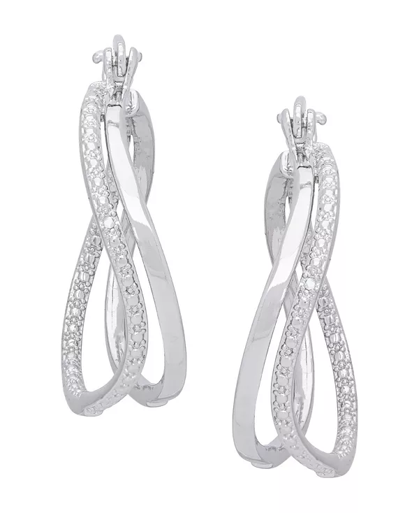 Серьги-Кольца с завитками и бриллиантовым акцентом Macy'S, silver