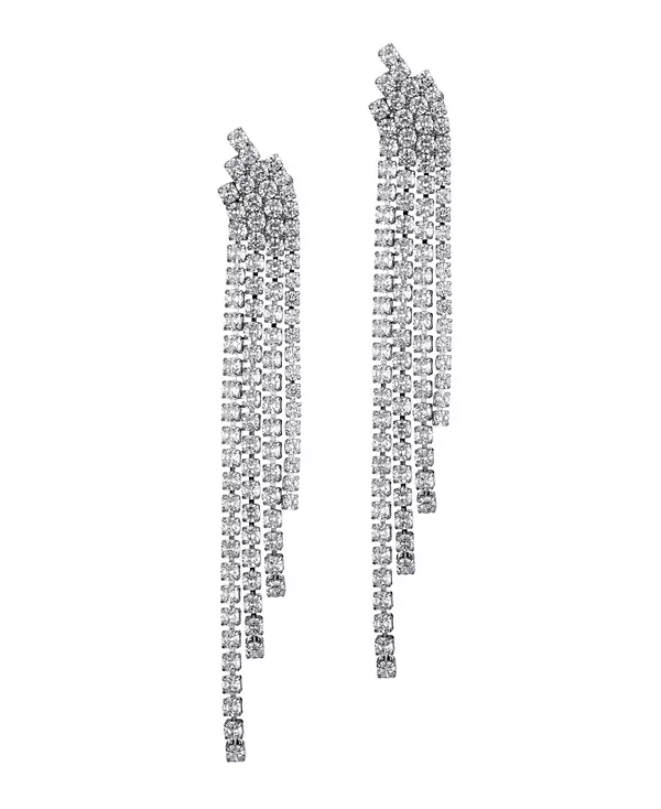 Серьги-каскады ADORNIA с посеребренным покрытием и кристаллами мерцают, грациозно двигаясь. Эти серьги, украшенные каскадом сверкающих кристаллов, оправленных в полированное серебро, элегантно обрамляют ухо, создавая ослепительный эффект.