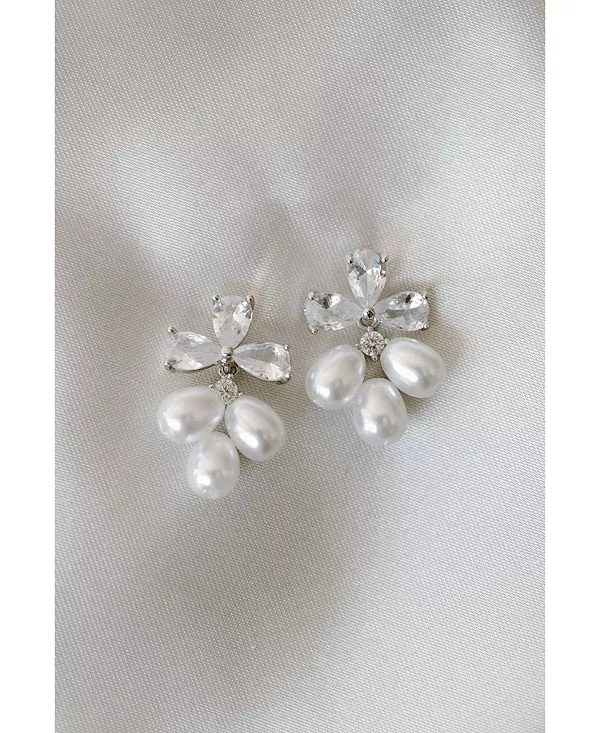 Наши серьги-подвески с жемчугом Windsor Pearl украшены тремя мерцающими кристаллами и нежными каплевидными жемчужинами, расположенными в форме цветка. В равной степени неподвластные времени и свежие, они станут идеальным завершающим штрихом для вашего образа перед алтарем или любого другого момента, требующего дополнительного блеска.