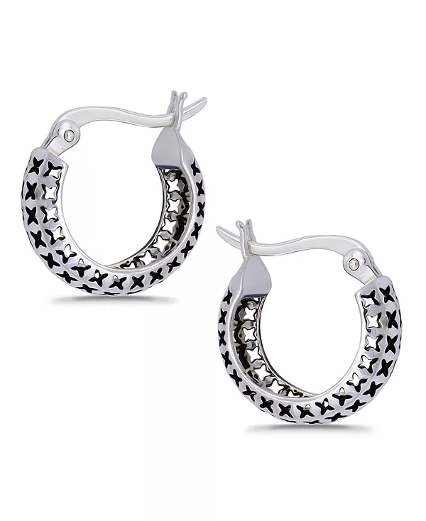 Эти серьги-кольца с застежкой-кнопкой от Macy's имеют открытый дизайн в виде буквы «X» с модным богемным оксидированием — идеальный подарок для любимого человека или для себя.