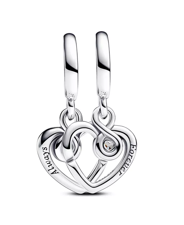 Отпразднуйте вечные узы с нашим разделяемым подвесным шармом «Forever Always» – особенным украшением из стерлингового серебра. Два сердца изящно переплетаются, образуя плавную форму, обрамленную сверкающим прозрачным кубическим цирконием. Этот шарм с гравировкой «Always» и «Forever» символизирует вечную любовь. Изящный дизайн выполнен в форме сердца с вырезом, который позволяет соединить два шарма вместе, символизируя вечную связь. Подарите одну половинку особенному человеку, постоянно присутствующему в вашей жизни, в знак нерушимой связи.
