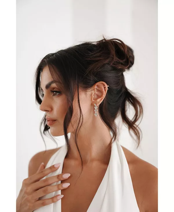 Подчеркните свой стиль этими ослепительными серьгами с мерцающими кристальными гвоздиками, которые изящно переходят в сверкающие камни, изысканно украшенные нежным жемчугом.