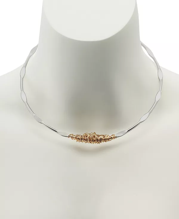 Очаровательное скульптурное ожерелье-воротник с контрастными динамичными деталями из проволоки, идеально подходит для повседневного образа.