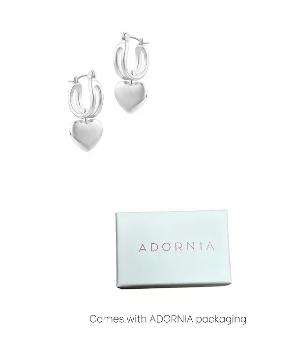 Выразите свой стиль с помощью серег-хагге с серебряным покрытием от ADORNIA, и пусть ваши уши сияют непринужденной изысканностью. Шикарное и универсальное дополнение к вашей коллекции украшений. Эти серьги, изготовленные с точностью и изяществом, представляют собой изящные кольца-хагге, украшенные очаровательными подвесками в форме сердечек, покрытыми сияющим серебром. Собираетесь ли вы нарядиться для вечернего выхода или добавить нотку нежности в свой повседневный образ, эти серьги — идеальный выбор. Их сдержанная элегантность и вневременная привлекательность делают их незаменимым аксессуаром для любого случая.
