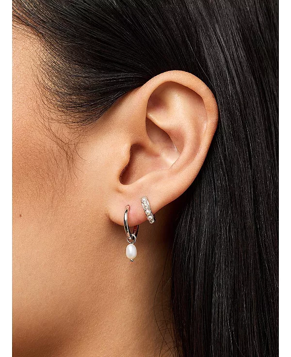 Эти элегантные серьги-кольца-хагги с блестящими жемчужинами Swarovski в оправе «паве» — настоящий маст-хэв этого сезона.