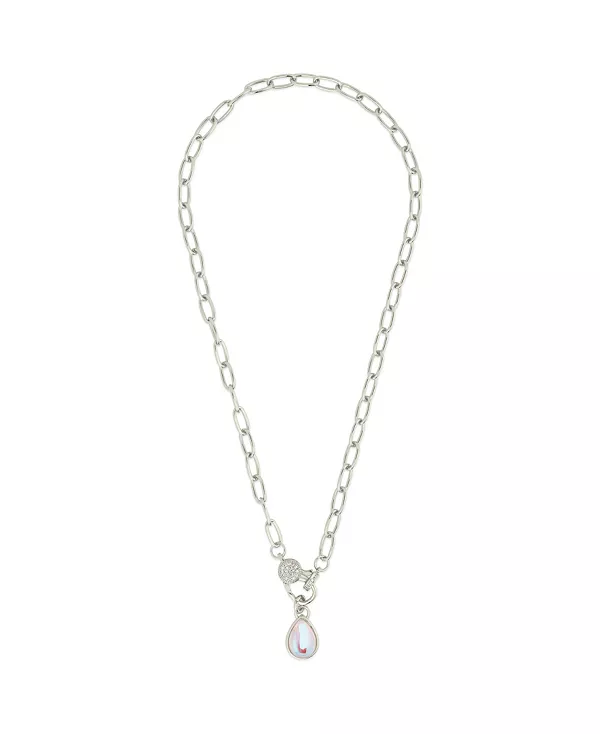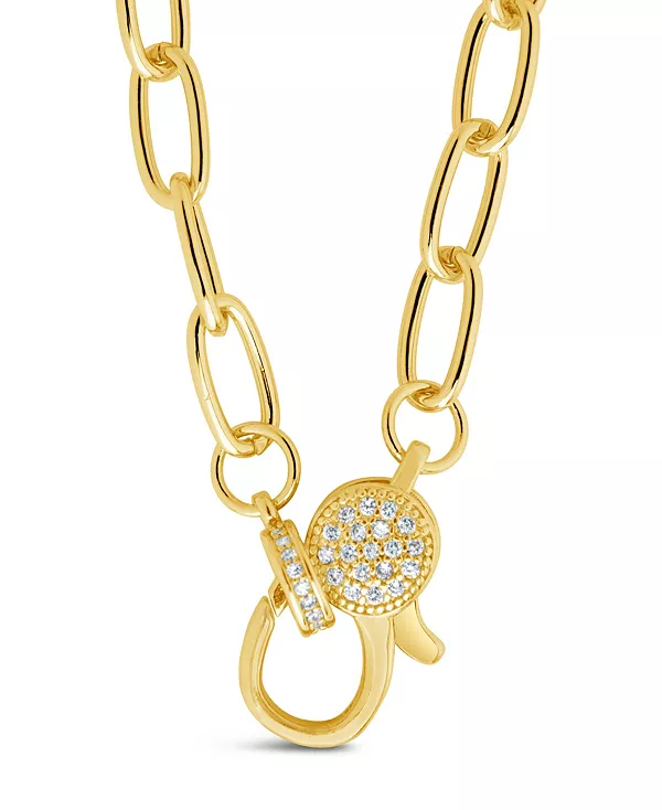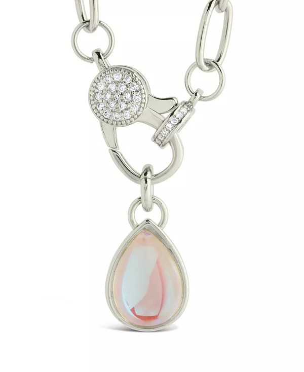 Украшенное сверкающими фианитами и светящимся лунным камнем, это элегантное украшение предлагает универсальность благодаря съемному шарму и модной цепочке в виде скрепки.