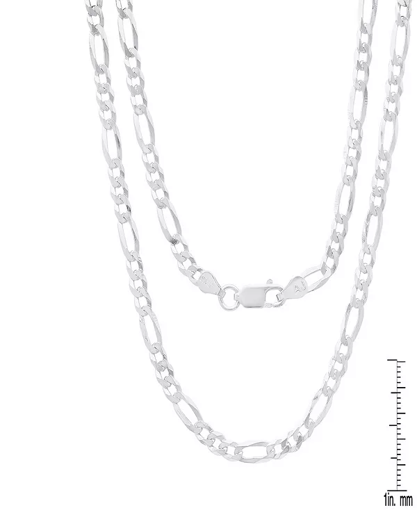 Это суперплоское колье-цепочка Figaro из стерлингового серебра добавит изысканности вашему образу, сочетая элегантность с классическим дизайном.