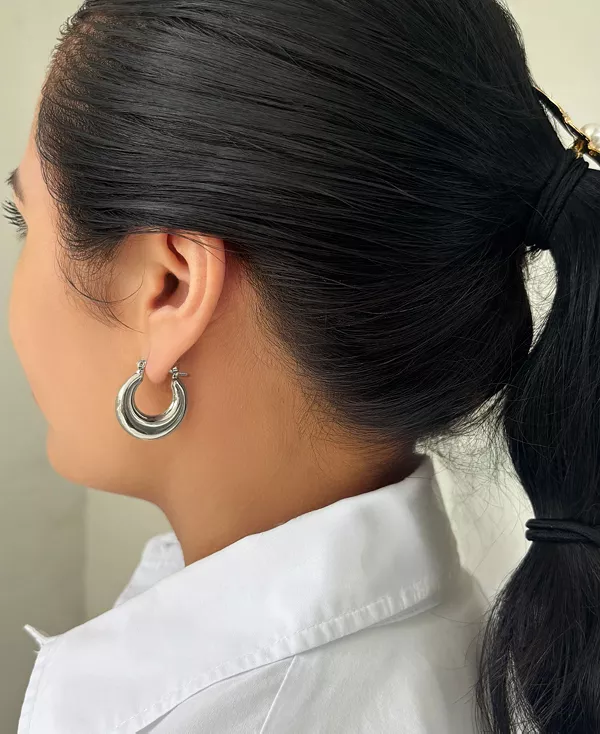 Серьги-кольца Adornia с куполообразным покрытием – это смелая, но элегантная интерпретация классического дизайна колец. Изготовленные из посеребренной латуни, эти серьги имеют куполообразную форму, которая добавляет объем и современную интерпретацию традиционному дизайну колец. Гладкая полированная поверхность красиво отражает свет, создавая эффектный и изысканный образ. Эти серьги идеально подходят для придания изысканности любому наряду и подойдут как для повседневных, так и для более нарядных образов. Устойчивое к потускнению посеребренное покрытие гарантирует блеск с течением времени, а легкая конструкция обеспечивает комфорт в течение всего дня. Это стильное и вневременное дополнение к любой коллекции украшений.