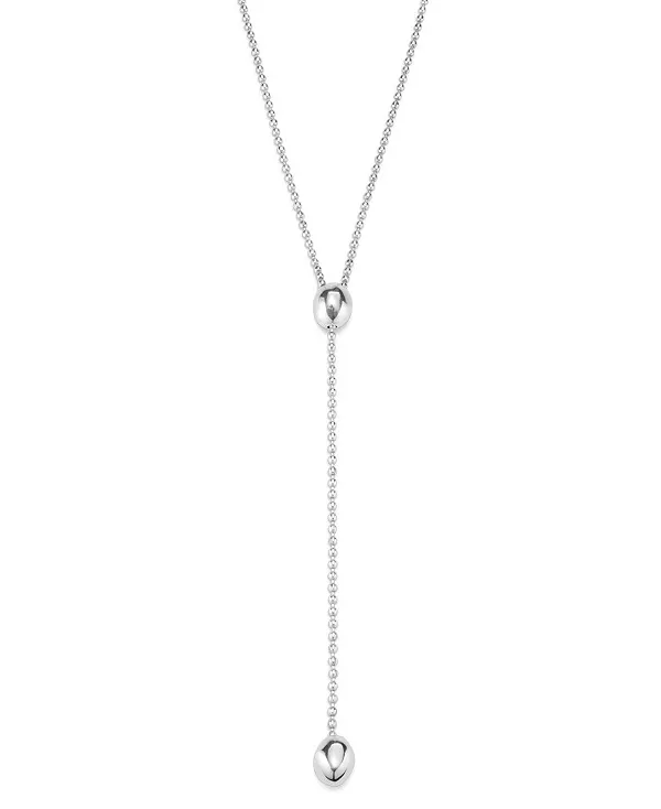 Длинное ожерелье из стерлингового серебра с двумя противостоящими грузиками. Регулируемая застёжка позволяет регулировать размер.