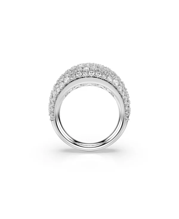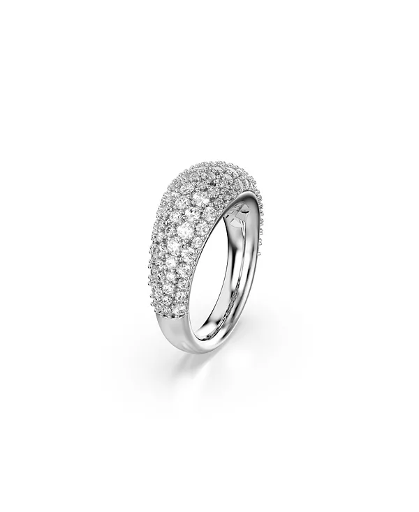 Это куполообразное кольцо с родиевым покрытием, созданное для максимального эффекта, украшено потрясающим декором из прозрачных фианитов Swarovski, закреплённых в технике шатонаж. Идеально подходит для моментов, когда требуется элегантность и изящество.