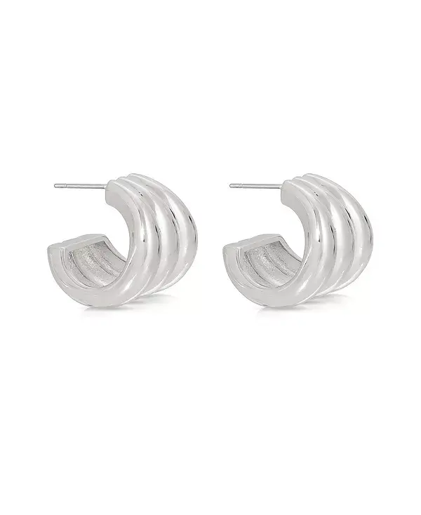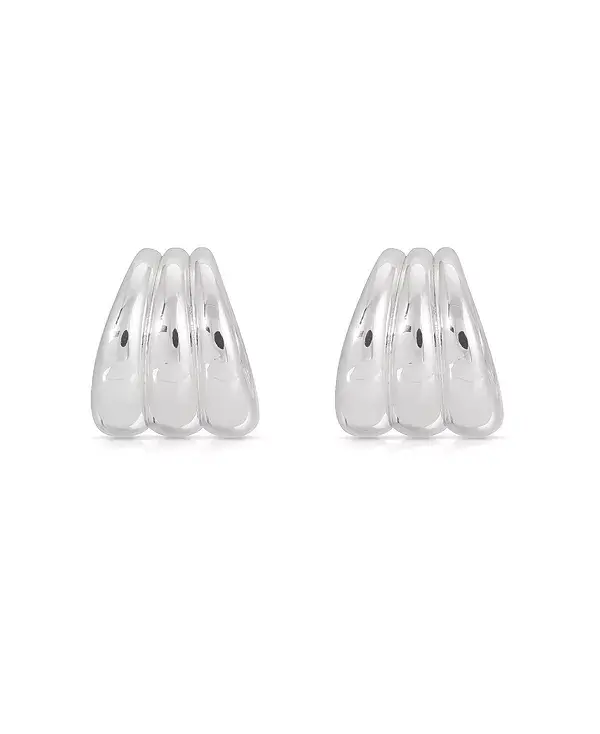Тройные ребристые серьги-кольца Ettika, silver