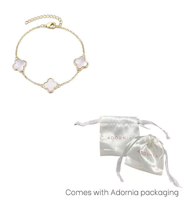 Браслет ADORNIA с белым перламутровым клевером, покрытый 14-каратным желтым золотом, – это изящное сочетание элегантности и очарования. Изящные белые перламутровые клеверы, расположенные на сияющей цепочке с покрытием из 14-каратного желтого золота, добавят мягкости и блеска любому образу. Легкий и регулируемый, он идеально подходит для многослойного ношения или ношения отдельно, добавляя легкое мерцание и нося удачу в ваш повседневный образ. Это украшение вне времени, которое украсит любое запястье.