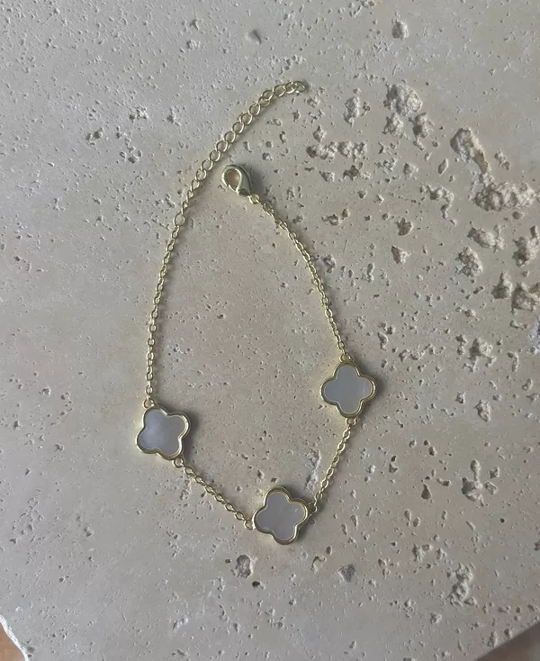 Позолоченный перламутровый браслет-клевер Adornia, white